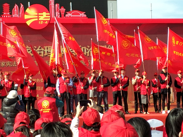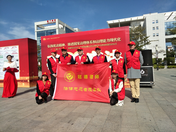 2019124日,在第六個國家憲法日之際,我所9名律師參加了市司法局在五一廣場組織的國家憲法日的宣傳活動和廈門市公共法律服務志愿者聯盟成立大會。