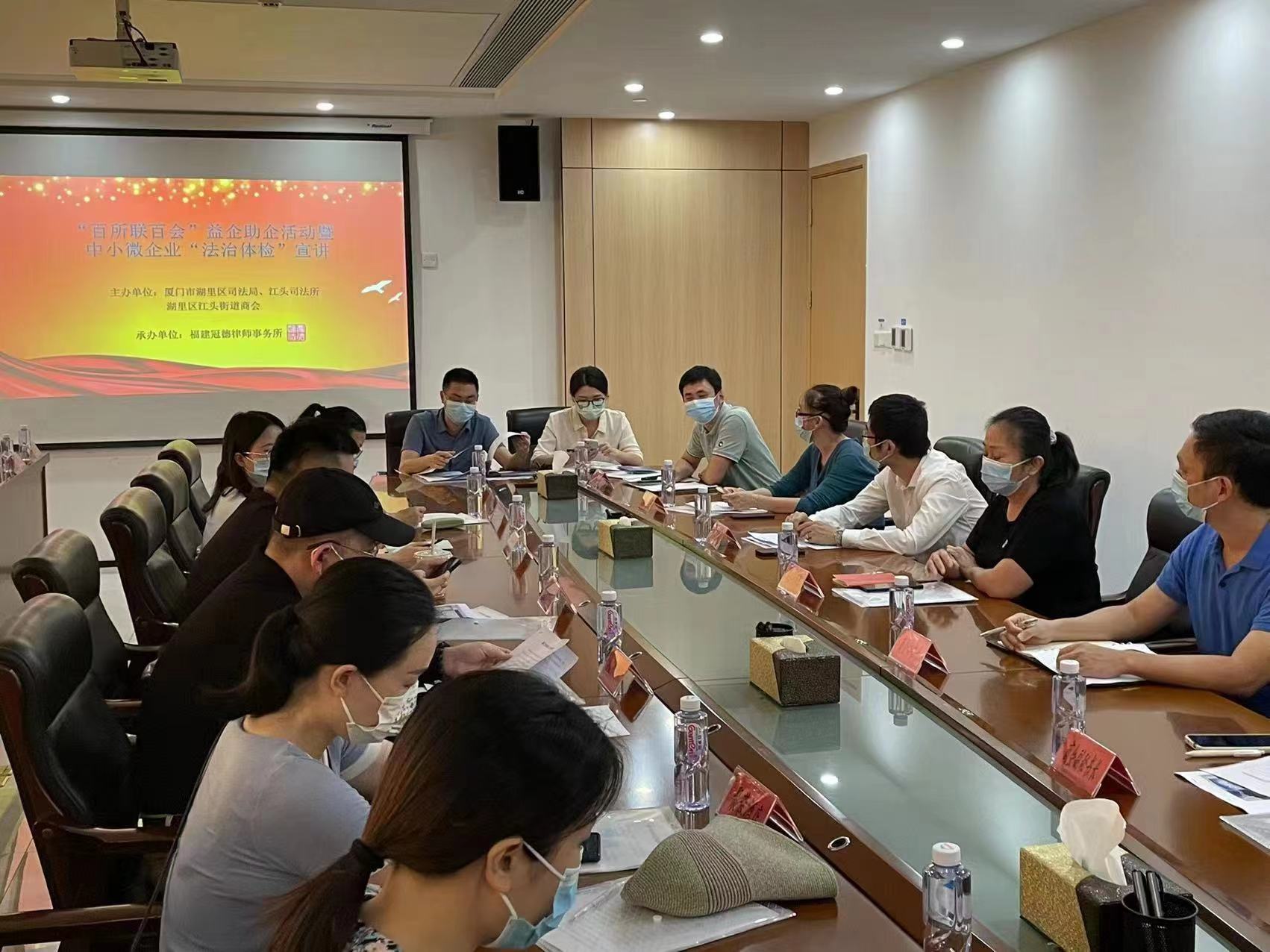 2022年11月湖里區司法局江頭司法所聯合街道商會、福建冠德律師事務所開展“百所聯百會”益企助企活動。