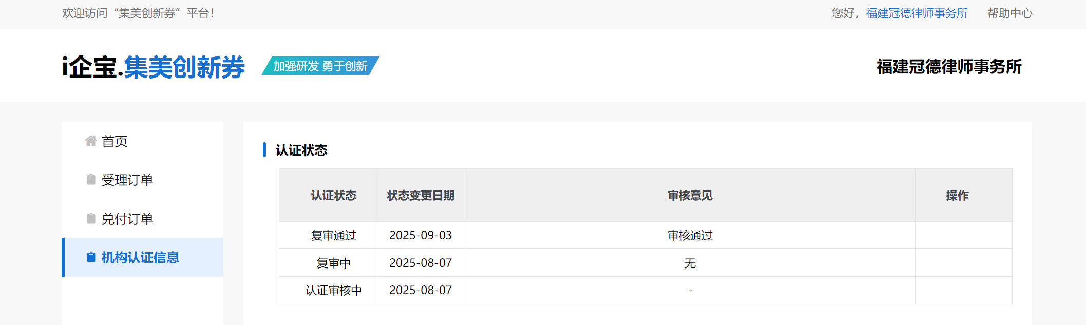 近日,集美創新券服務平臺迎來重要合作伙伴 —— 福建冠德律師事務所龔曉洪律師團隊憑借深厚的專業實力,成功入駐平臺并順利通過機構認證,正式成為該平臺認可的法律服務服務商,將為區域內企業帶來精準、高效的法律支持。